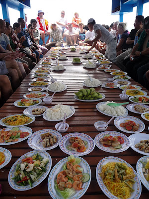 They always eat ‘family style’ with a big pile of rice in the middle.