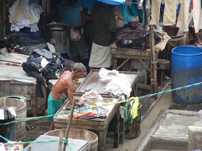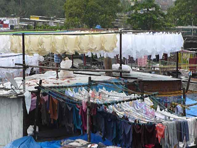 If you send out your laundry in Mumbai, it comes here to mingle with the other pants and sheets in hot sudsy water before it is beaten on a flogging stone, dipped in hot starch, and hung out to dry.