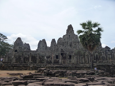The exterior of Bayon, my favorite temple. If you look close, you will see thousands of elaborate faces carved into the stone.