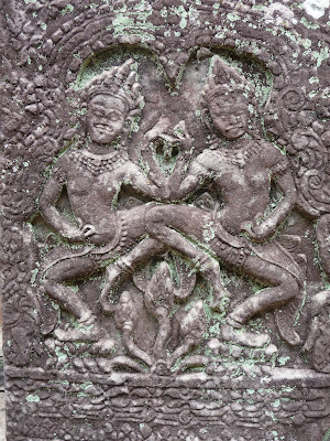 The city of Angkor was the political, religious, and social center of the Khmer empire, and each monument in it houses more symbolism than Citizen Kane. Not a sliver of temple is left without a carved deity or message, mostly about worshipping Hindu gods. But also about Khmer history. King Jayavarman VII, a king born from the Gods, made it his mission to have the history of Khmer/Cham battles carved into the most important of temples. He wanted to preserve history in a most beautiful way. The current and last God King, His Majesty Sihanouk, funded the Khmer Rouge and asked that he be able to rule away from the throne so he could focus on his movie career. I think the genes of the Gods really start dwindling after being passed on so many times.